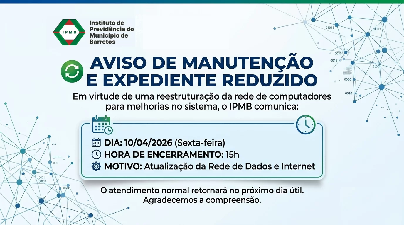 Holerite Central de Serviços Prova de vida Portal da transparência Legislação Notícias Ouvidoria Conselhos Notícias Pesquisar notícias Aviso Importante Ver a notícia Números de telefones do IPMB Ver a notícia Comunicado Ver a notícia Informe de Rendimentos para Declaração do Imposto de Renda 2026. Ver a notícia Comunicado de combate ao assédio moral e sexual Ver a notícia Telefone temporariamente fora do ar, entre em contato pelo número (17) 98142-2416. Ver a notícia Todas as notícias