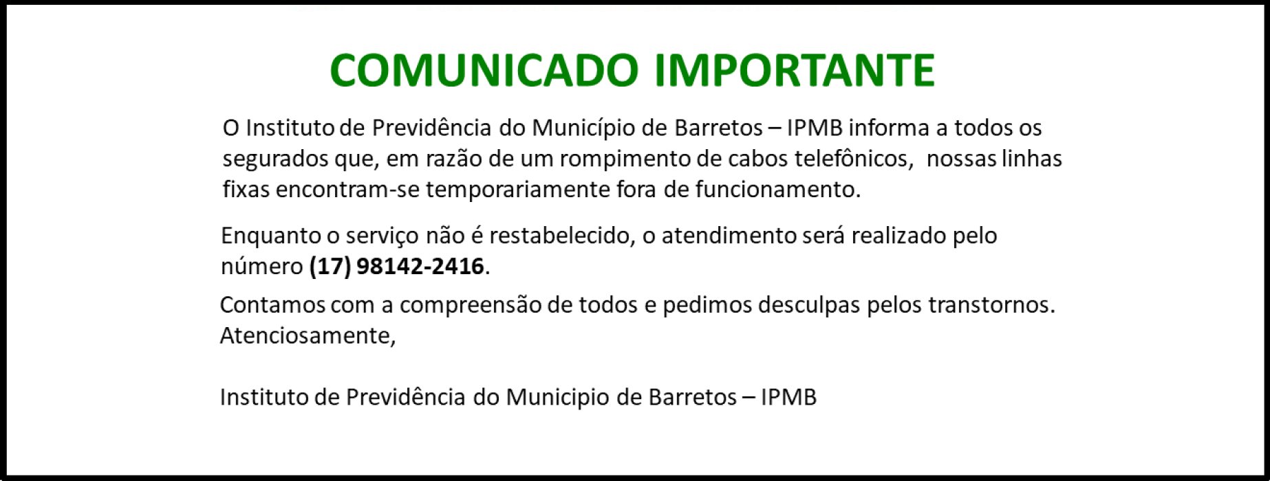 Holerite Prova de vida Portal da transparência Legislação Notícias Ouvidoria Cartilhas Conselhos Anterior Próximo Notícias Pesquisar notícias Comunicado de combate ao assédio moral e sexual Ver a notícia Telefone temporariamente fora do ar, entre em contato pelo número (17) 98142-2416. Ver a notícia Informe de Rendimentos para Declaração de Imposto de Renda de 2025. Ver a notícia Instituto de Previdência informa sobre adequação na folha de pagamento Ver a notícia Alerta de golpe Ver a notícia Todas as notícias