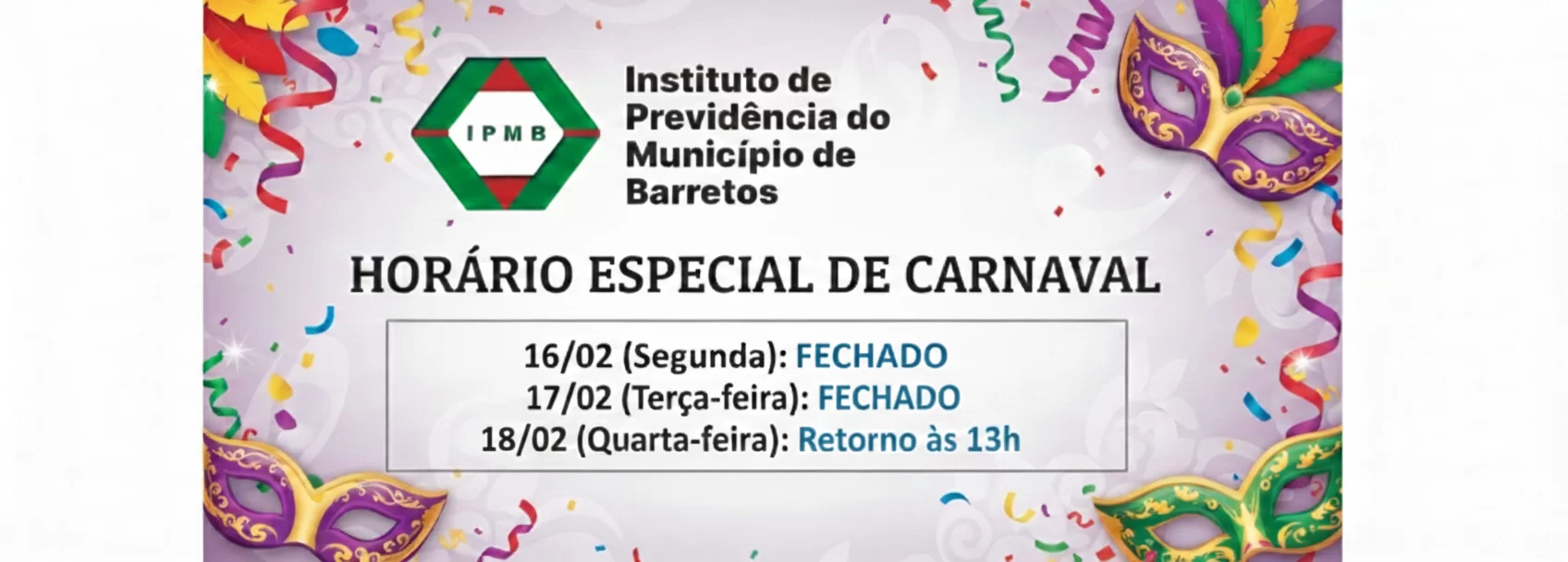 Holerite Central de Serviços Prova de vida Portal da transparência Legislação Notícias Ouvidoria Conselhos Notícias Pesquisar notícias HORÁRIO ESPECIAL DE CARNAVAL Ver a notícia Comunicado de combate ao assédio moral e sexual Ver a notícia Telefone temporariamente fora do ar, entre em contato pelo número (17) 98142-2416. Ver a notícia Informe de Rendimentos para Declaração de Imposto de Renda de 2025. Ver a notícia Instituto de Previdência informa sobre adequação na folha de pagamento Ver a notícia Alerta de golpe Ver a notícia Todas as notícias