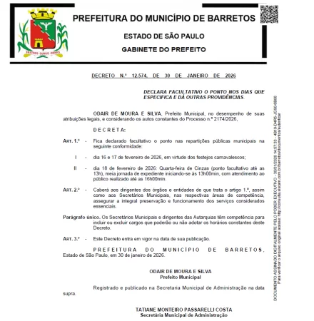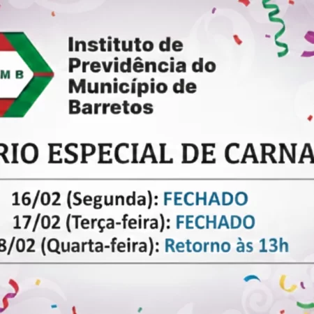 Publicado em 13/02/2026 às 14:14 - Atualizado em 13/02/2026 às 14:23HORÁRIO ESPECIAL DE CARNAVAL COMPARTILHAR facebook messenger twitter whatsapp outras mídias Imprimir Download